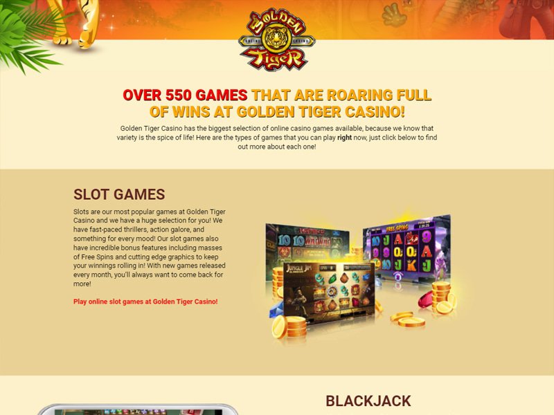 Golden Tiger Casino tiene más de 600 juegos para ofrecer, la mayoría de los cuales son tragamonedas de Microgaming. Sus tragamonedas van desde clásicas, de 3 carretes y de 5 carretes hasta tragamonedas de video. Además, cuentan con emocionantes tramas, temas emocionantes, excelentes funciones de bono e incluso jackpots progresivos. Entre los títulos mejor valorados se encuentran Game of Thrones, Tomb Raider, The Dark Knight, King Cashalot, Mega Moolah, Your Lucky Day, Fish Party, Santa Paws y Robot Butler.